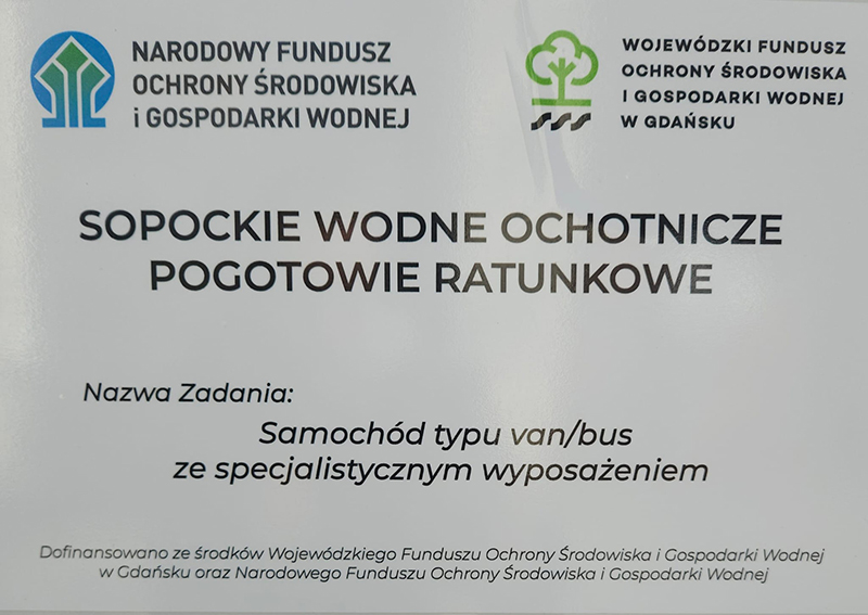 Sopockie WOPR zrealizowało zadanie pt. „Samochód typu van/bus ze specjalistycznym wyposażeniem” w ramach programu „FLORIAN – wsparcie w zakupie specjalistycznego sprzętu wykorzystywanego w akcjach ratowniczych” (edycja 2025).